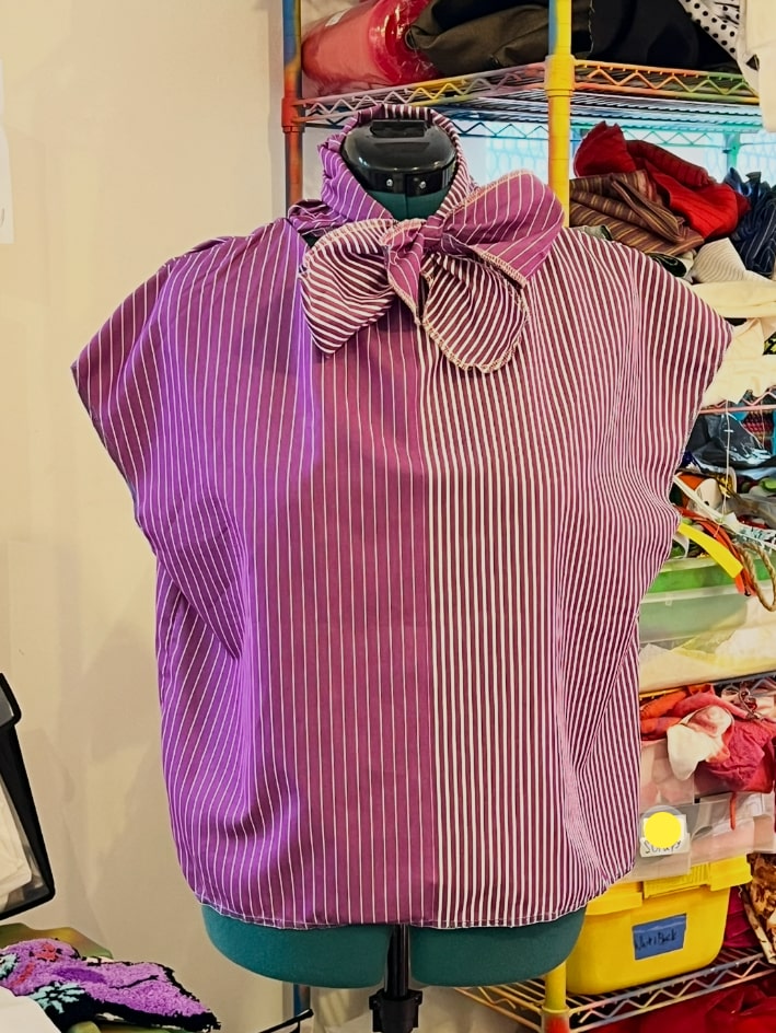 Our commitment to sustainability also extends to our creative process: leftover fabric scraps are repurposed into new collectible artwork and accessories, reworked into future sample designs, and are even used as the back drop at our fashion shows —ensuring that nothing goes to waste and everything has the chance for reinvention.